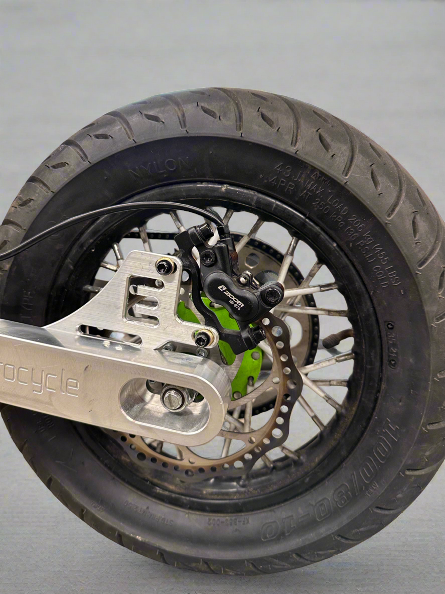 Enhance the performance of your razor mx500, mx650, or sx500 with our Bolt on extended swingarm. Available in 4-5 inch, 5-6 inch, and 7-8 inch sizes, these extensions allow for larger rims and motors. The drop outs provide precise chain tension adjustment while the adjustable axle slides make installation a breeze. Crafted from 6061 billet aluminum, our extended swingarm is built to withstand heavy duty use.